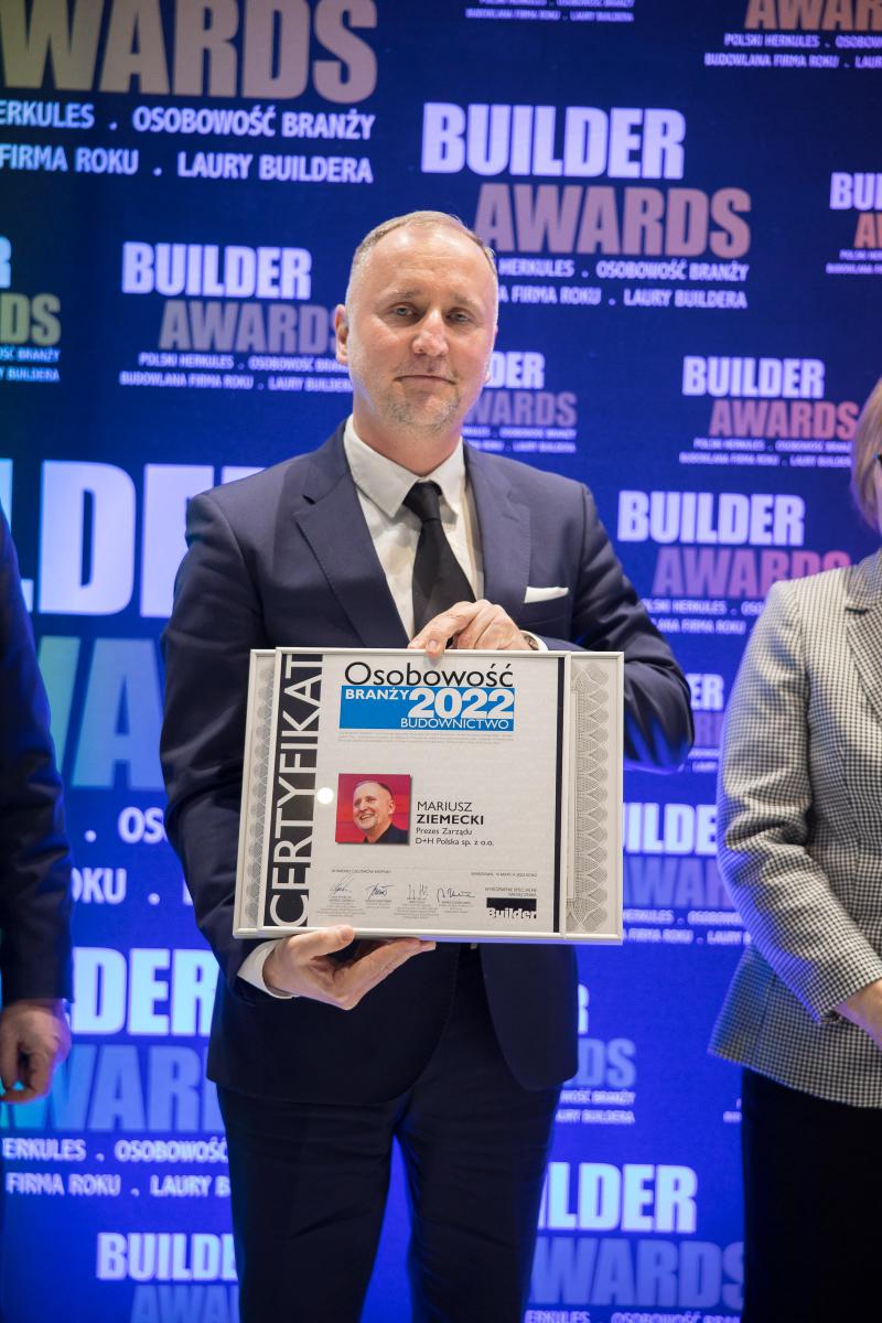 Nagrody podczas gali Builder Awards odebrał osobiście prezes zarządu D+H Polska Mariusz Ziemecki. W krótkim przemówieniu, w imieniu całego zespołu D+H Polska, podziękował Kapitule Buildera za dostrzeżenie naszej organizacji w morzu podmiotów gospodarczych branży budowlanej.